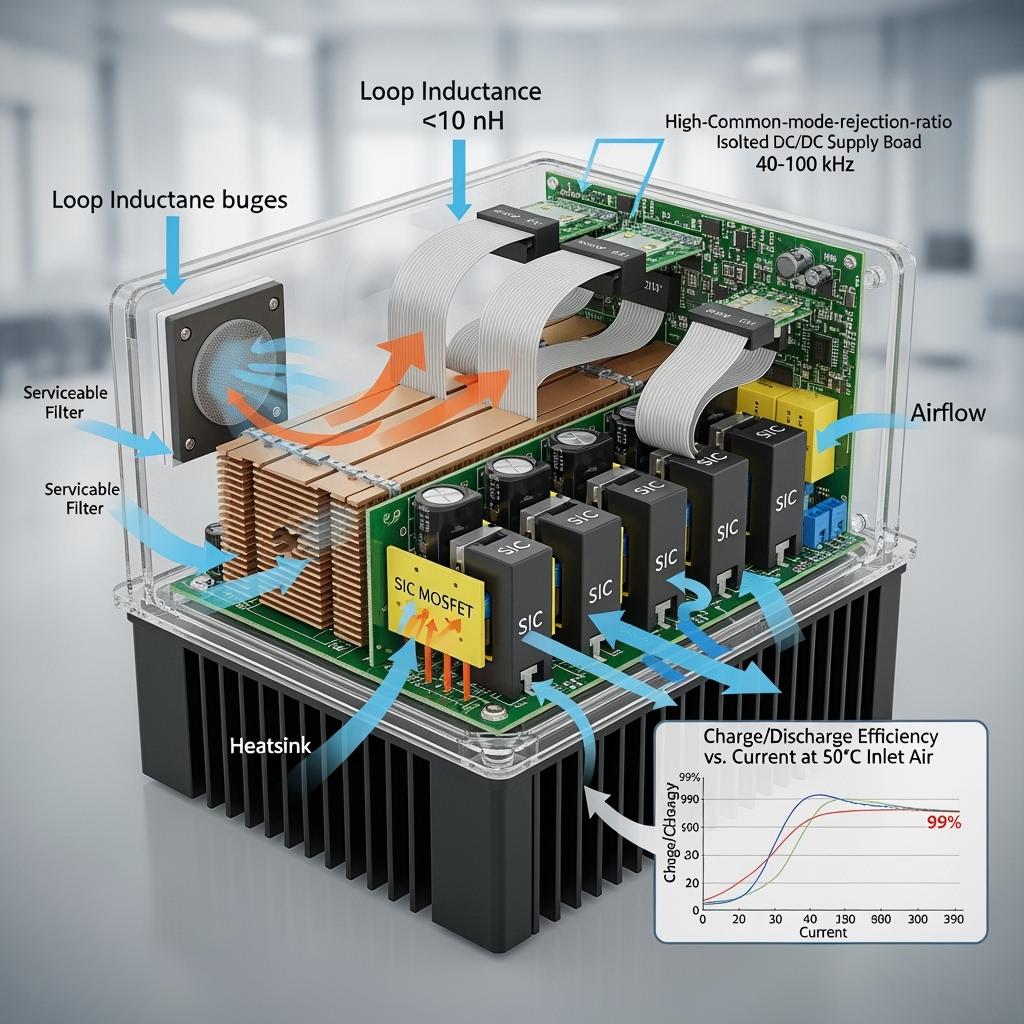 They operate at 40–100 kHz with SiC devices and minimized parasitics, reducing both conduction and switching losses. Real‑world gains of 0.3–0.8 percentage points at 20–40% load are common, improving ToU arbitrage and battery cycling efficiency.