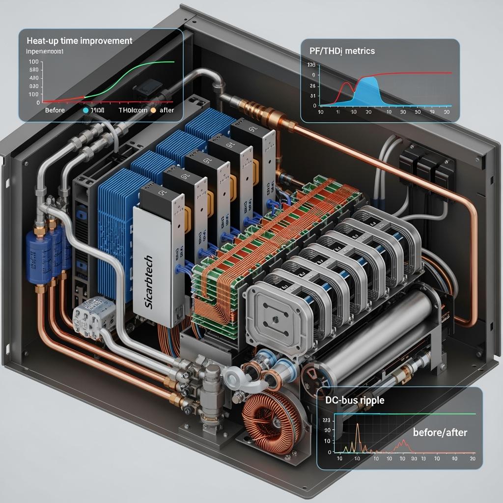 By combining higher-frequency, low-loss switching with active front ends and low-inductance packaging, Sicarbtech’s stack improves heating speed, uniformity, and power quality while containing thermal stress.
