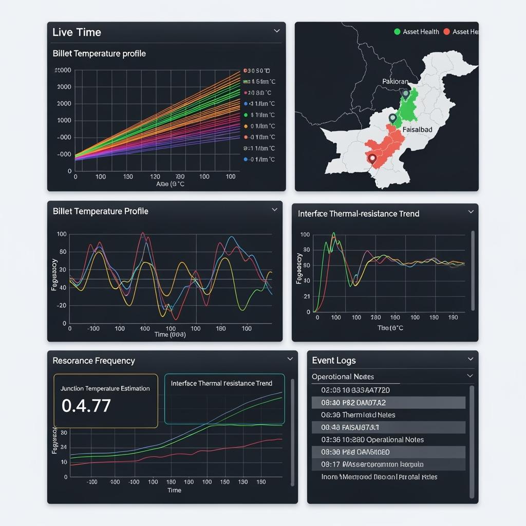 A heat-treatment line in Faisalabad adopted resonance self-optimization and infrared-driven closed-loop control. Side-to-center billet temperature differences reduced by approximately 20%–30%, improving surface quality and takt stability. Online health monitoring flagged rising interface thermal resistance on a module weeks in advance, enabling a planned swap during a scheduled stop and avoiding a production break.