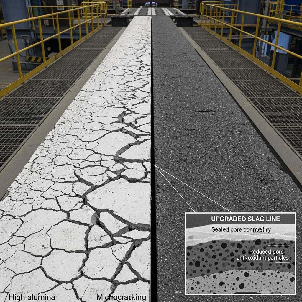| Outcomes that drive cost and uptime | SiC–Carbon Working Layer + Dense SiC Prefabs + Sealing | High-Alumina or Single Magnesia-Carbon Baselines |