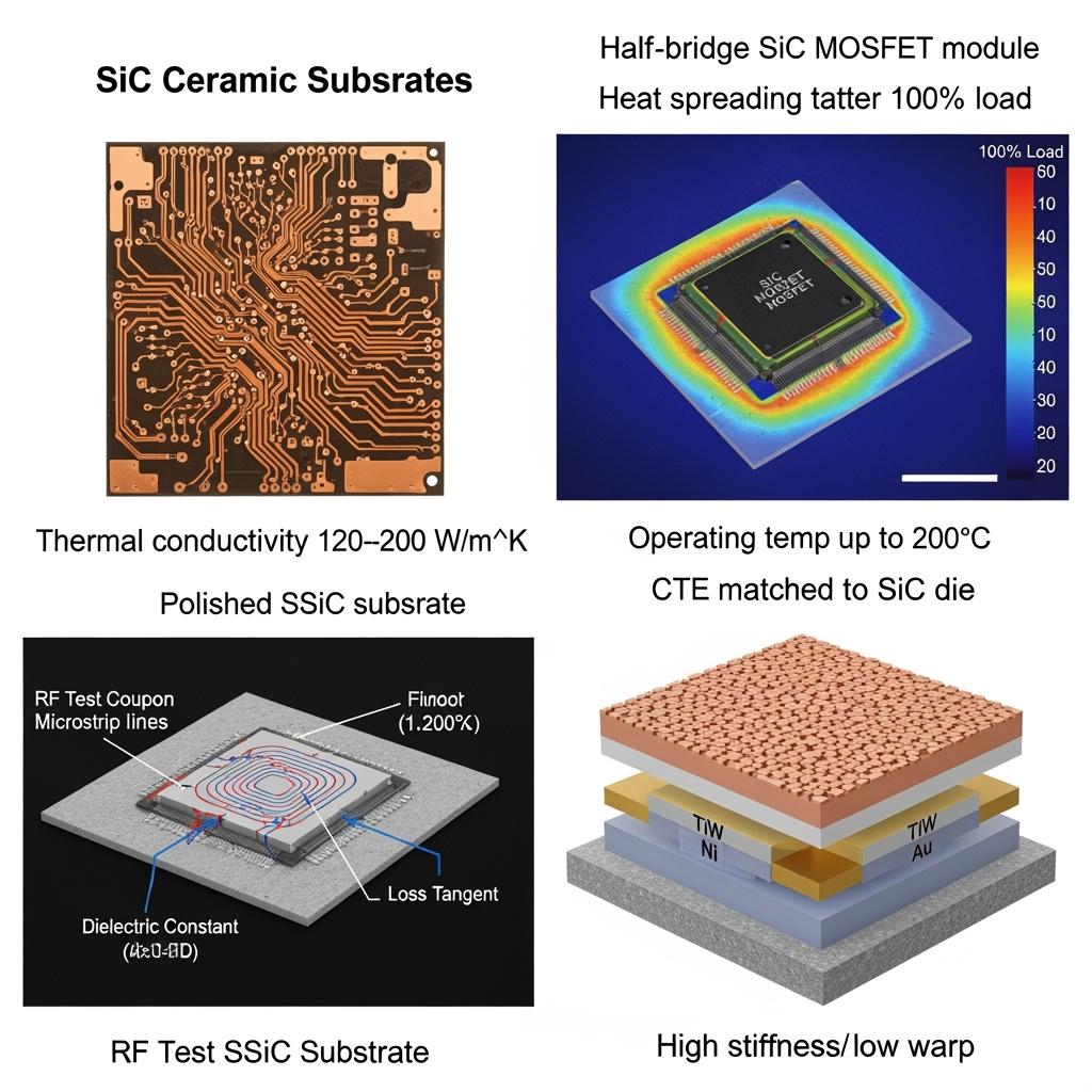 پاور ماڈیول پیکیجنگ اور RF ایپلی کیشنز کے لیے ہائی-تھرمل-کنڈکٹیویٹی سلیکون کاربائیڈ سیرامک سبسٹریٹس