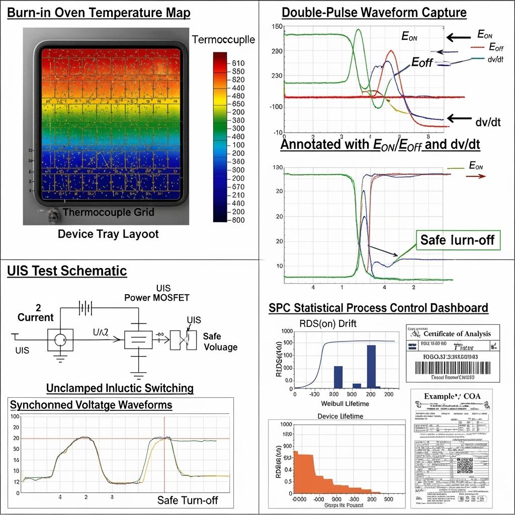 - Choose HTGB/HTRB/HTOL durations and stresses based on application (UPS, SVG/APF, EV DC fast charge) and target DPPM