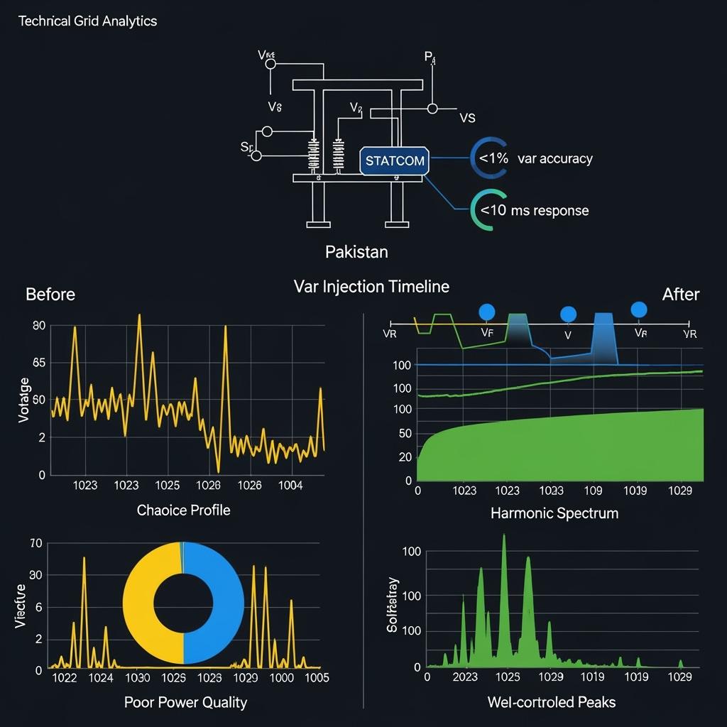 - Central Punjab solar cluster: Rapid compensation reduced flicker events by ~45% at the PCC; harmonic levels aligned with IEEE 519 targets after adaptive control retuning.