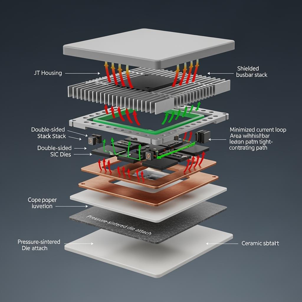 | Packaging & cooling | Double-sided cooling, low‑L busbars | Single-sided, long leads | Lower Tj, stronger EMC margins |