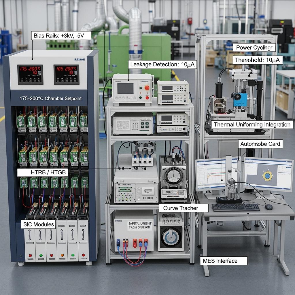 • Align HTRB/HTGB voltages with device class (650/1200/1700 V) and add margin; select durations (24–168 h) per reliability target.