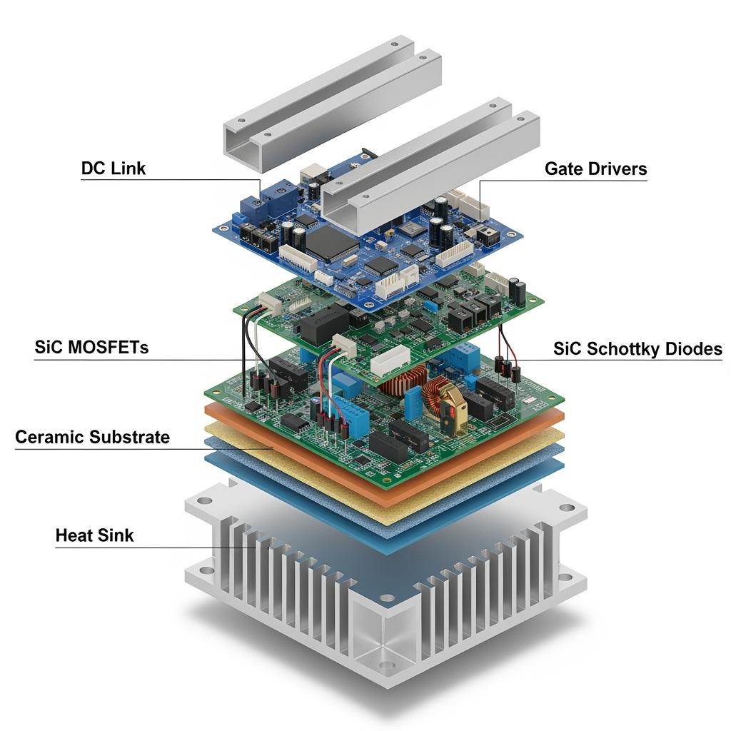 - Solution: SiC three-level inverter modules with integrated DC bus capacitor units and high-thermal-conductivity substrates.