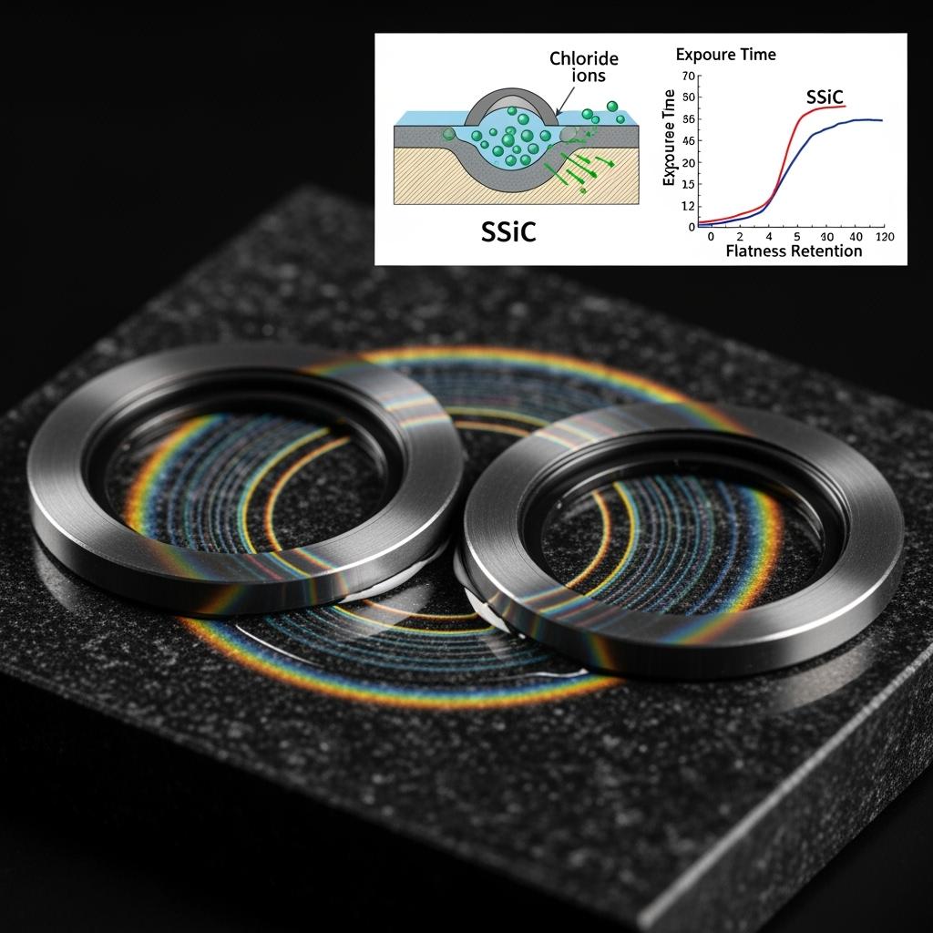 SSiC typically offers the best combination of near-zero porosity, chloride resistance, and ultra-flat lapping capability. Final selection is validated against pressure-temperature profiles, counterface materials, and flatness retention requirements.