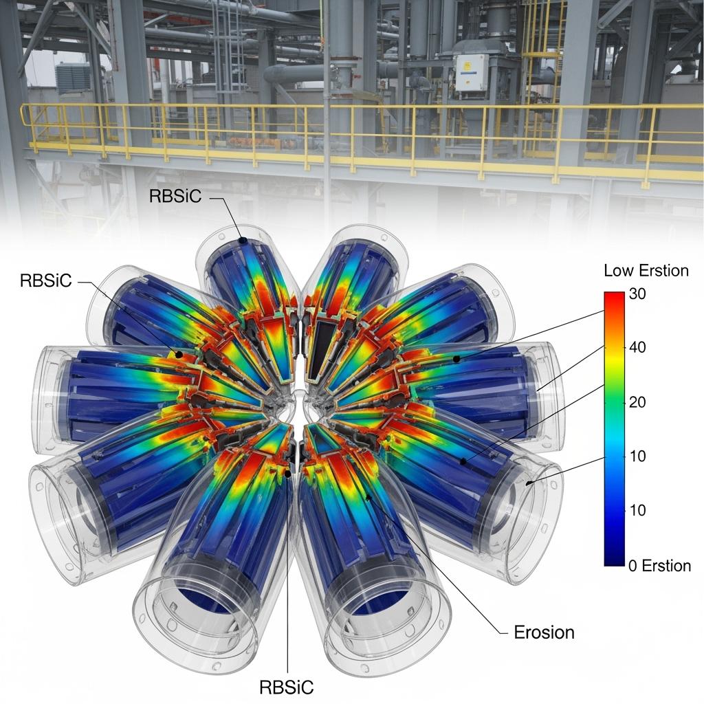 Pipe elbows, chutes, transfer pointsRBSiCImpact/abrasion balance; cost-effectiveDoubling of wear life; reduced unplanned downtime