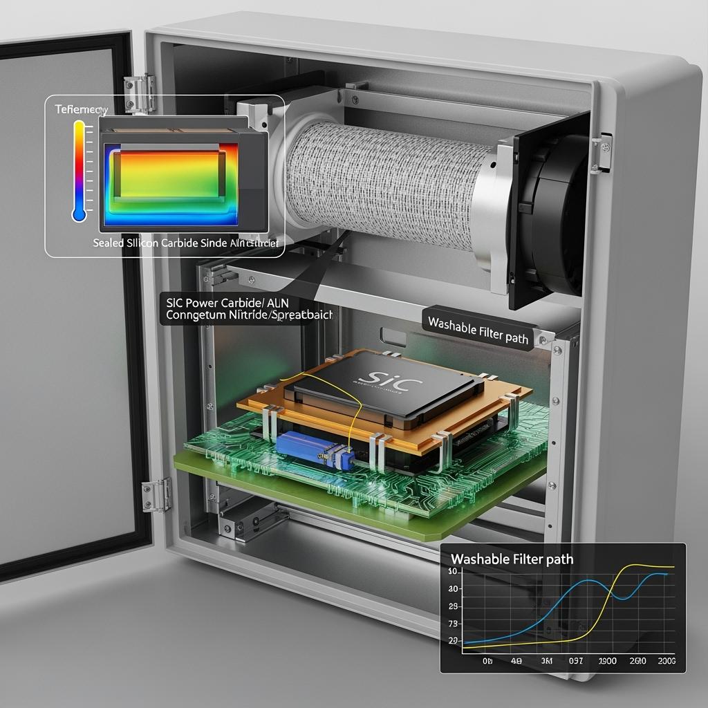 Thermally, copper‑metallized AlN or composite ceramics plus sintered silver create short, high‑conductivity paths from junction to baseplate. Phase‑change interfaces and vapor‑chambers spread transient heat, resisting pump‑out and dry‑out that plague conventional greases. Air paths with washable filters and sand‑drain features maintain flow while simplifying service; liquid loops with anti‑scaling channels sustain performance despite variable water quality. Coatings and encapsulation schemes maintain creepage, insulation, and contact integrity under salt mist and humidity. In practice, these strategies reduce derating, extend maintenance intervals, and improve acceptance testing on the first pass—important for lenders who increasingly demand evidence from heat, dust, and salt‑spray regimes.