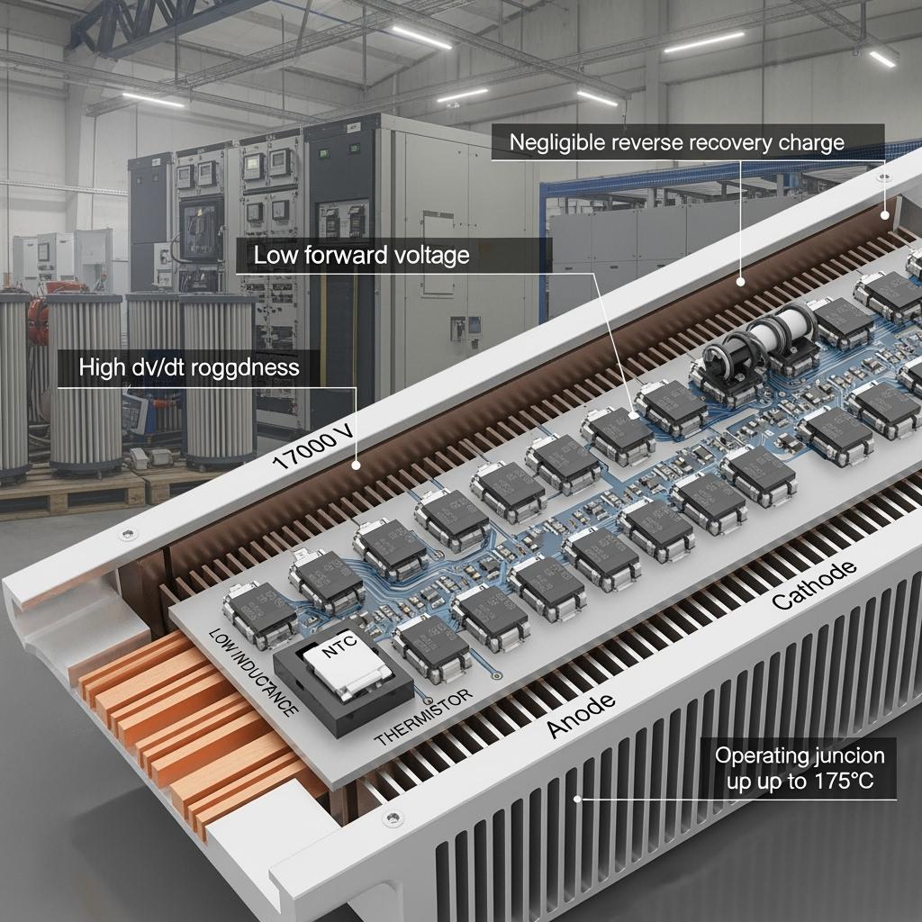 - Gerilim/akım değeri: Çelik ve çimentoda yaygın olan HVDC ve yüksek gerilim doğrultucular için ≥1700 V sınıfını seçin; dalgalanma koşulları için boşlukla akımı boyutlandırın.