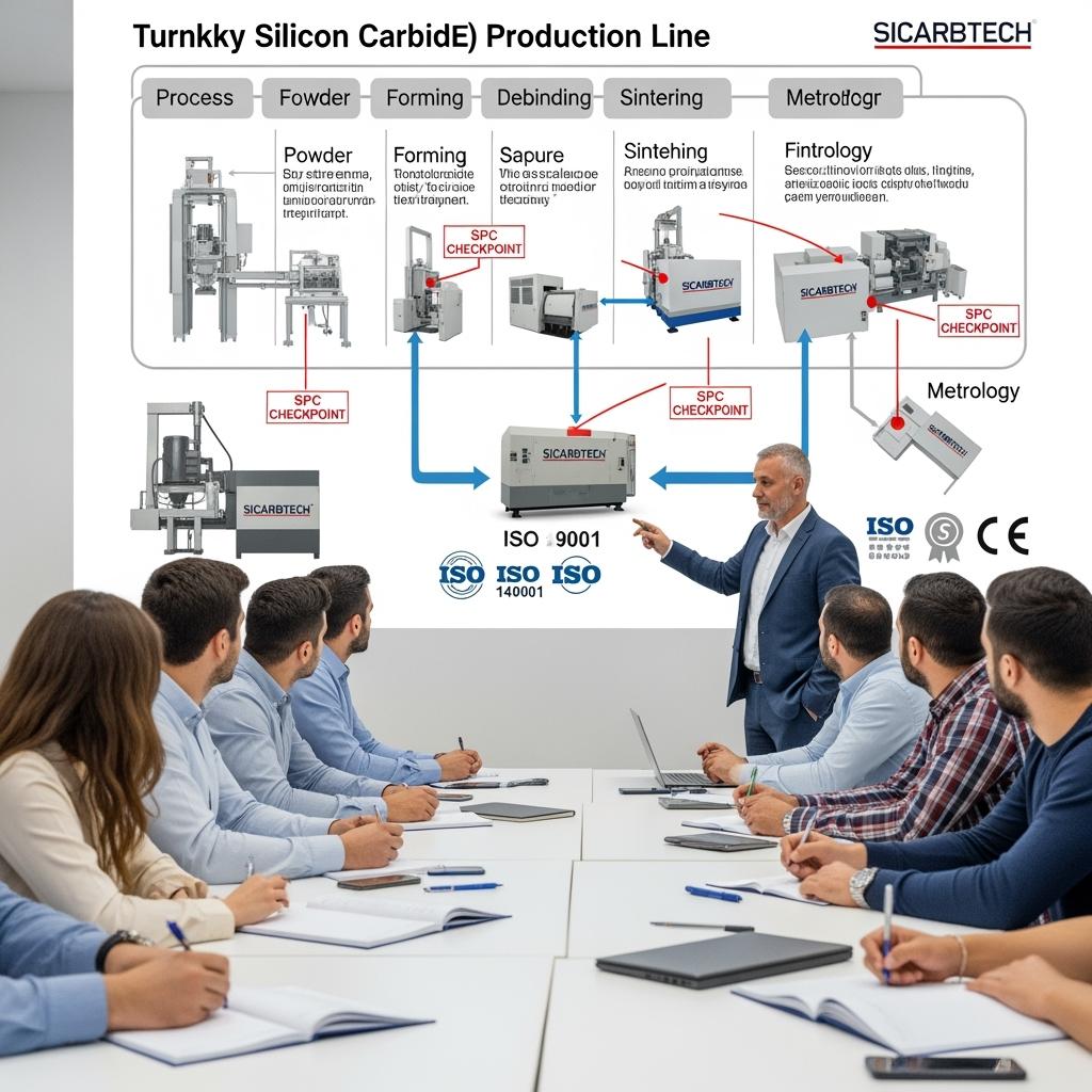 Quality systems are embedded from day one. We align inspections with TS EN and ISO norms, implement SPC on critical parameters, and structure documentation that maps cleanly to customer audits. Where equipment interfaces with automotive supply chains, we support PPAP and IATF 16949-aligned records. Post-launch, our engineers remain engaged with cycle optimization, kiln profile refinement, yield improvement, downtime analysis, and preventive maintenance planning. This turnkey model—validated through collaborations with 19+ enterprises—compresses time-to-quality, de-risks capex, and builds resilient local supply for critical SiC parts.