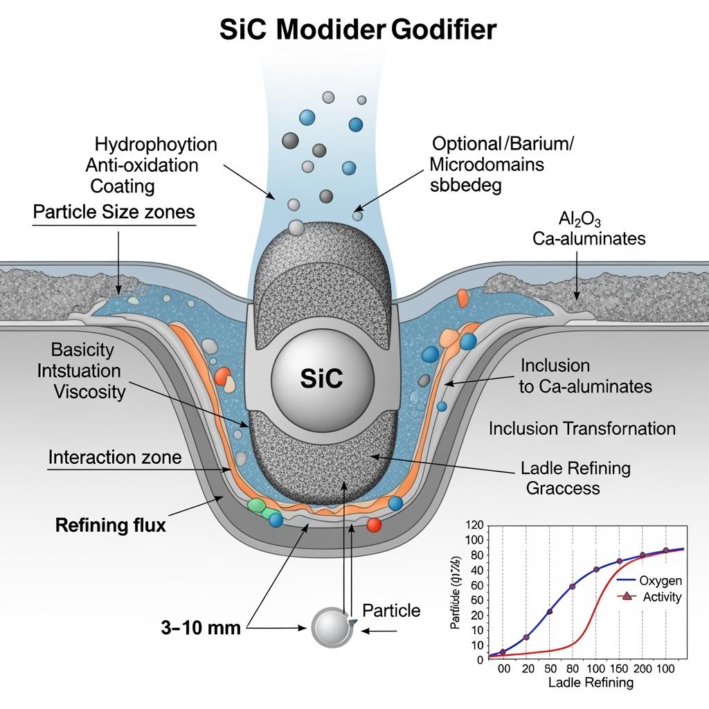 Silisyum Karbür Modifikatörünü pota arıtma akısı ve inklüzyon kontrolü ile pota arıtma sinerjisinden ayıran şey, malzeme kinetiğinin akı davranışı ile kasıtlı olarak birleştirilmesidir. Granülün çözünme profili, akı bazlığı ve viskozitesi ile tamamlandığında, deoksidasyon hem daha hızlı hem de daha nazik hale gelir. İnklizyonlar, sert, köşeli alüminadan, tundiş akışını kolaylaştıran ve nozül açıklığını koruyan, daha yumuşak kalsiyum alüminatlara dönüşür. Ayrıca, tahmin edilebilir silisyum alımı, son saniye tel düzeltmelerini azaltarak ısı süresini ve operatör iş yükünü azaltır. CAS Weifang İnovasyon Parkı'ndan Prof. Li Wei'nin belirttiği gibi, "Pota arıtma, koreografi ile ilgilidir. SiC ve akı adımları senkronize edildiğinde, zaman veya sıcaklık için ödeme yapmadan temizlik elde edersiniz" (CAS Malzeme İncelemesi, 2023).