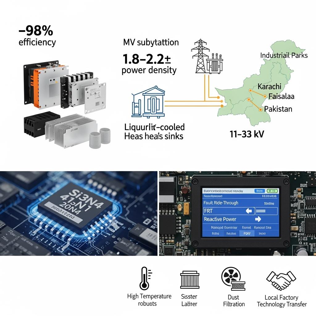 Pakistan'ın endüstriyel çekirdeği—tekstil, çimento ve çelik—karar verici bir anla karşı karşıya. Yükselen elektrik tarifeleri, 11–33 kV besleyicilerdeki şebeke dalgalanmaları ve karbonsuzlaştırma baskısı, yüksek verimli güç dönüşümünün hızlandırılmış bir şekilde benimsenmesini teşvik ediyor. Pil enerji depolama sistemi PCS'si, orta gerilim fotovoltaik inverterleri ve yüksek performanslı sürücüler, 2025–2030 için etkinleştirici platform olarak silisyum karbür (SiC) üzerinde birleşiyor.